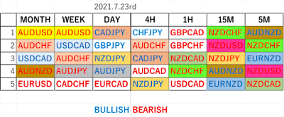 2021年7月23日(金)終了後の週末に整理した今週用の要注目通貨ペア候補です。